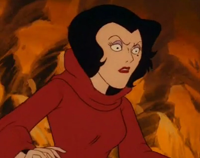 Somnambula true beauty was a elderly woman gray hair bony hands and a red cloak after she hypnosis the ponies with her spell she regain her beauty into a beautiful woman with black hair and a black mole on her right cheeks.
